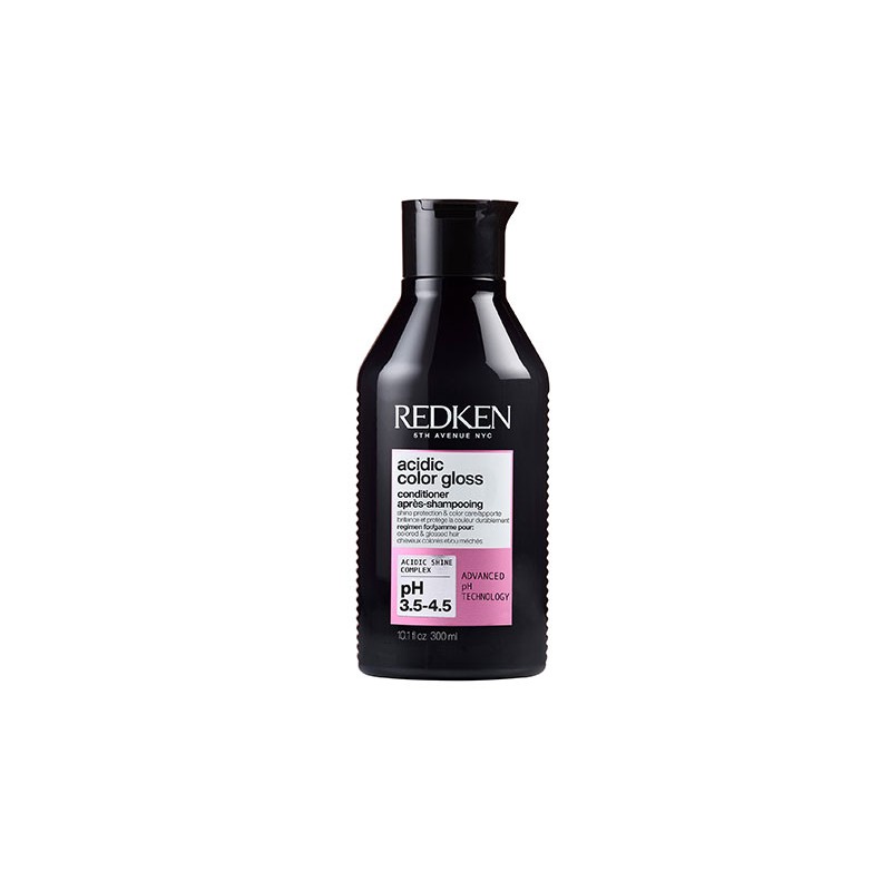 Acondicionador para cabello coloreado y con brillo, formulado con Acidic Shine Complex y Tecnología de pH Avanzada que acondiciona y potencia el brillo del cabello gracias a su fórmula con pH ácido que sella la cutícula y fija el brillo para un color vibrante más duradero, acondicionamiento intenso y protección del brillo de salón en casa.